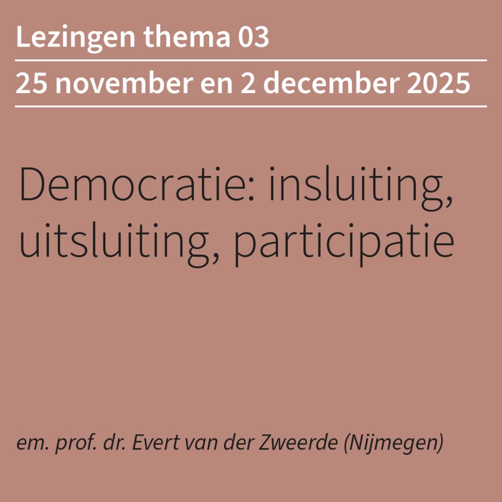 Het programma van het nieuwe cursusjaar is gereed. Het thema is ‘Participatie en uitsluiting‘, een vraagstuk dat door een tiental sprekers aan de orde zal worden gesteld.